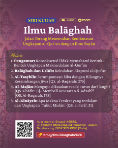 Al-Qur’an diturunkan dengan bahasa yang indah, dalam, dan penuh hikmah. Namun, tanpa memahami Ilmu Balāghah, banyak ungkapan ayat berisiko dipahami secara kaku dan keliru. Ilmu Bayān akan menyingkap keindahan dan kedalaman ungkapan Al-Qur’an melalui pemahaman tasybīh, majāz, dan kināyah. Seri Kuliah ini akan mengajak para peserta menyoroti bagaimana bahasa wahyu membentuk makna, menegur jiwa, dan meluruskan cara pandang hidup—agar Al-Qur’an tidak hanya dibaca, tetapi benar-benar dipahami dan dirasakan kenikmatannya.